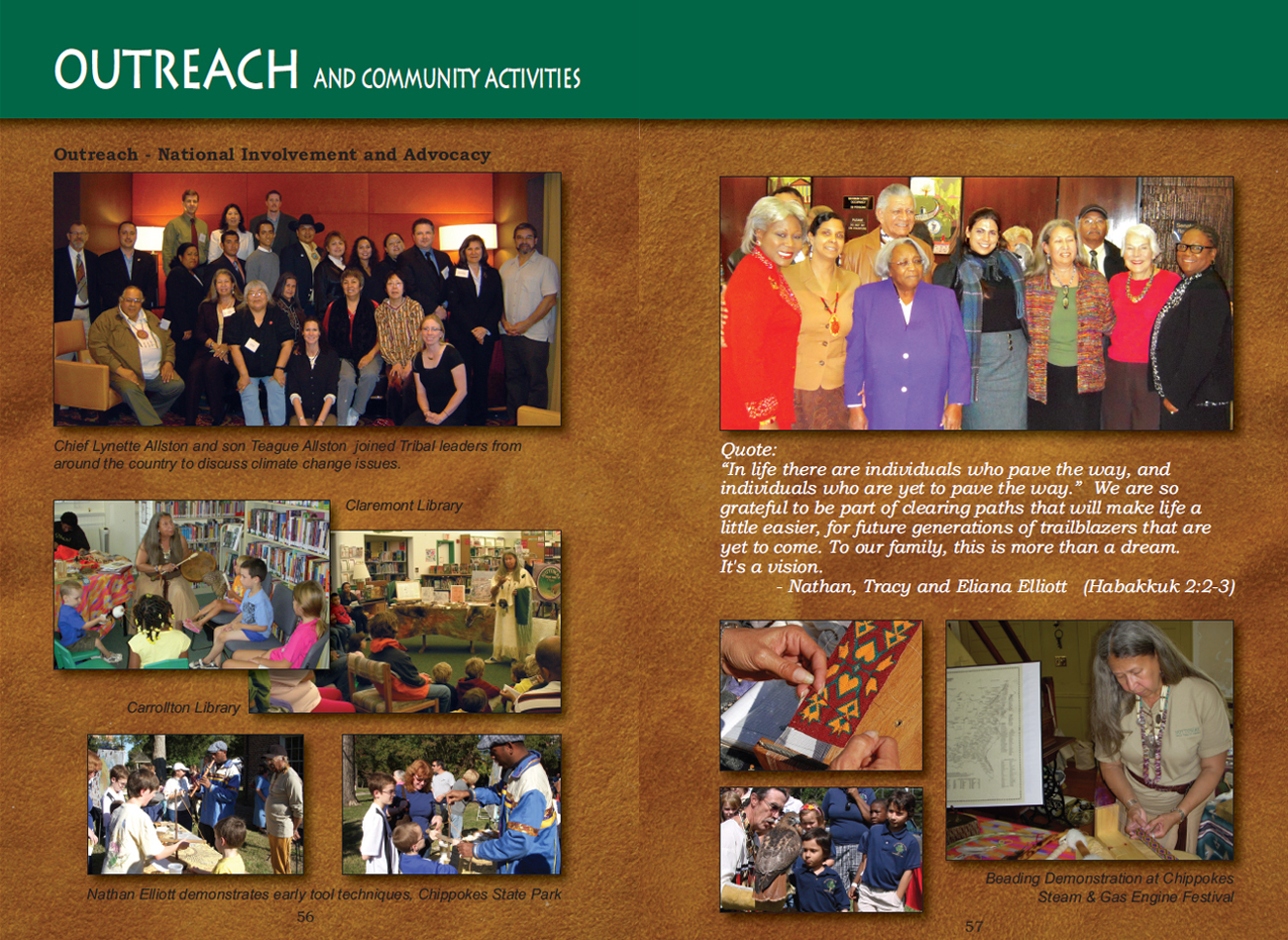 Pages illustrating activities in which the tribe has engaged..